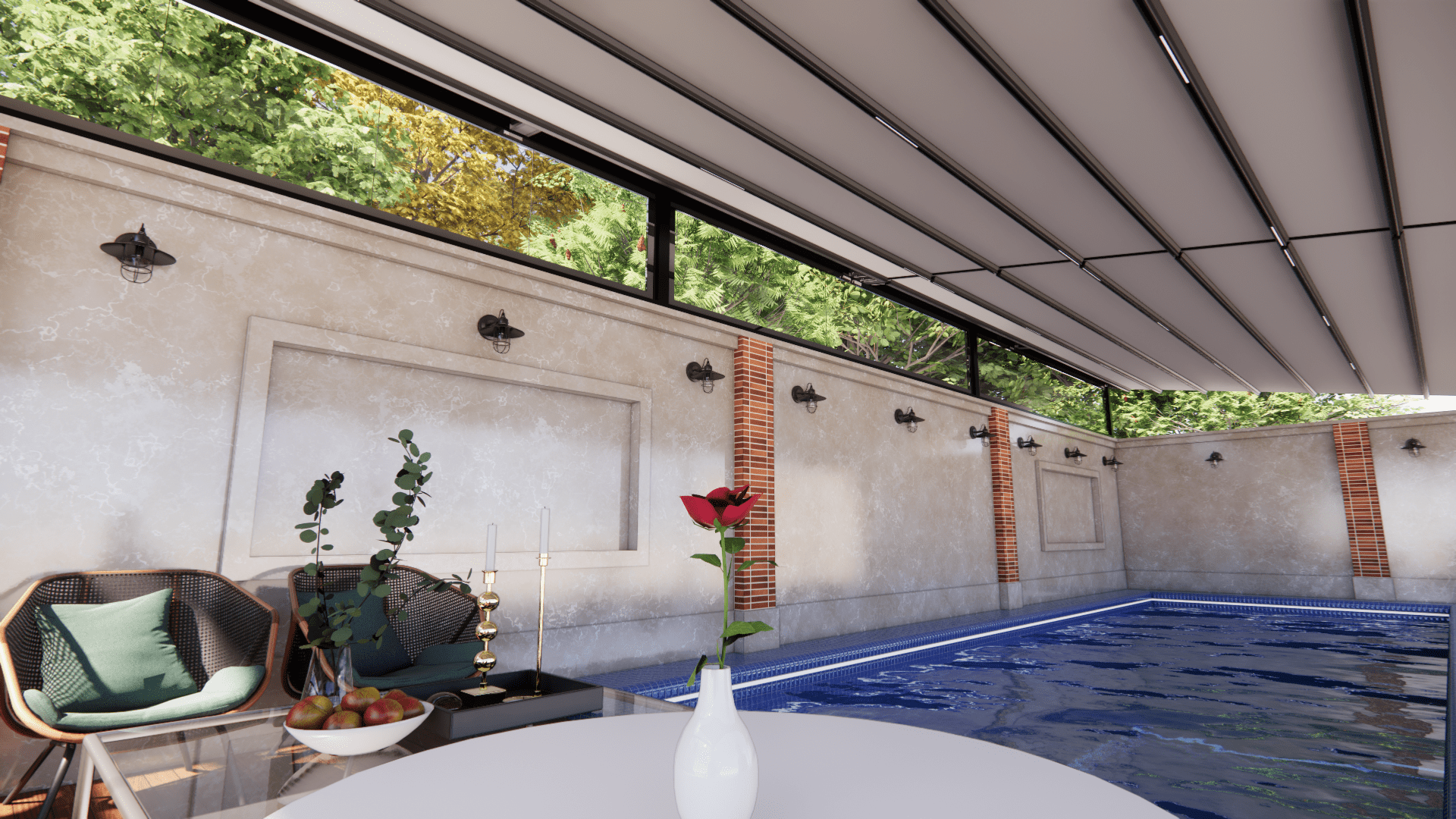 2. ایجاد فضای سرپوشیده در فضای باز: برای محافظت از فضای باز در برابر آفتاب، باران، باد یا برف، سقف متحرک یک کاربرد کاربردی و مدرن ارائه می‌دهد. با این ویژگی می‌توانید در تمامی فصول از فضای باز استفاده کرده و تجربه‌ای لذت‌بخش داشته باشید.